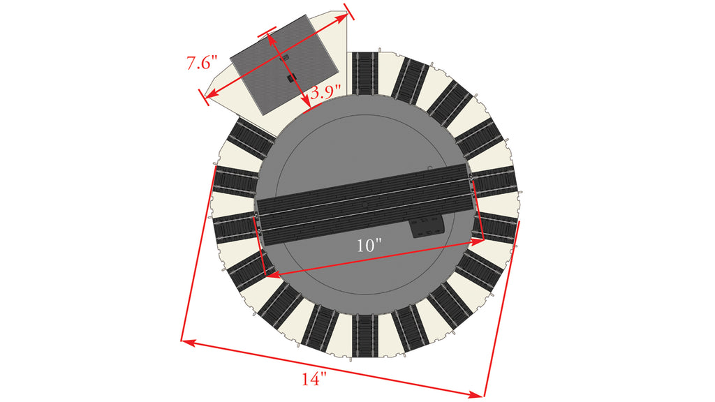 Turntable bridge is 10"; outside diameter is 14"
