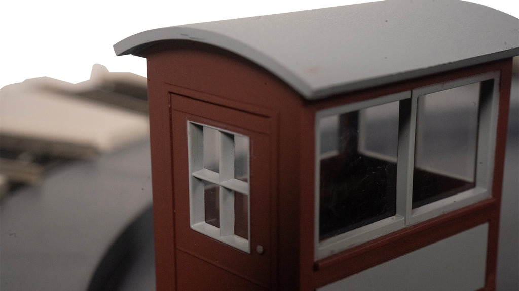 DCC-EQUIPPED MOTORIZED ELECTRIC TURNTABLE - HO Scale. Bring your entire model railroad together in one place and get your electric trains on track fast with the Bachmann Trains HO Scale DCC Motorized E-Z Track Turntable. Designed for HO Scale E-Z Track, this turntable is also compatible with smaller On30 Scale engines as well as other popular track systems. This easy to operate turntable features a motorized gear drive and indexing so, when you flip the switch, it accurately aligns the bridge with any of the 16 nickel silver track positions. Additional features include DCC-equipped with dual-mode NMRA-compliant decoder, switch and wires provided for DCC (analog) operation if desired, Turntable Bridge is 10", outside diameter is 14", painted maintenance building and prototypical operator’s cabin included. (Note: Locomotive is not included).