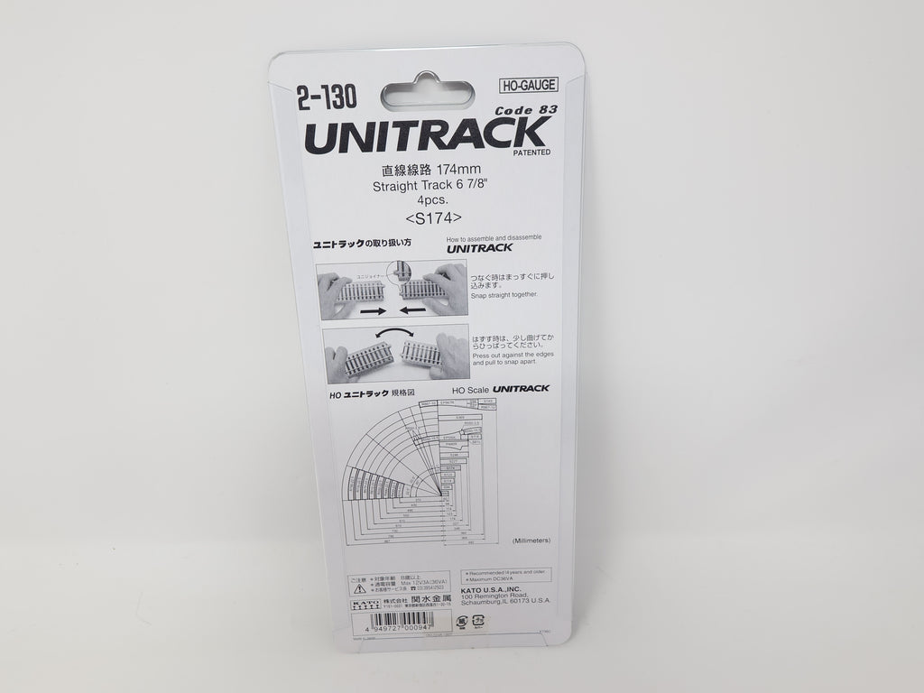 KATO 2-130 HO Scale, Unitrack 6 7/8" Straight Track (4), Code 83