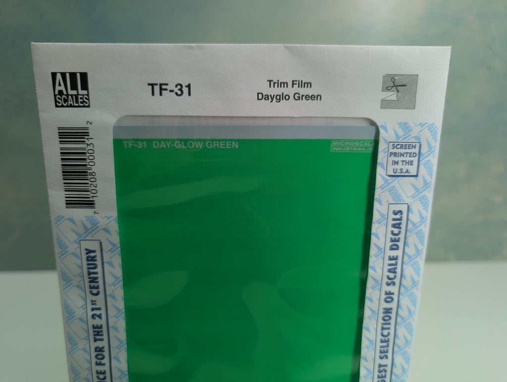 MICROSCALE #TF-31 HO Scale Trim Film Dayglo Green, Decal Sheet