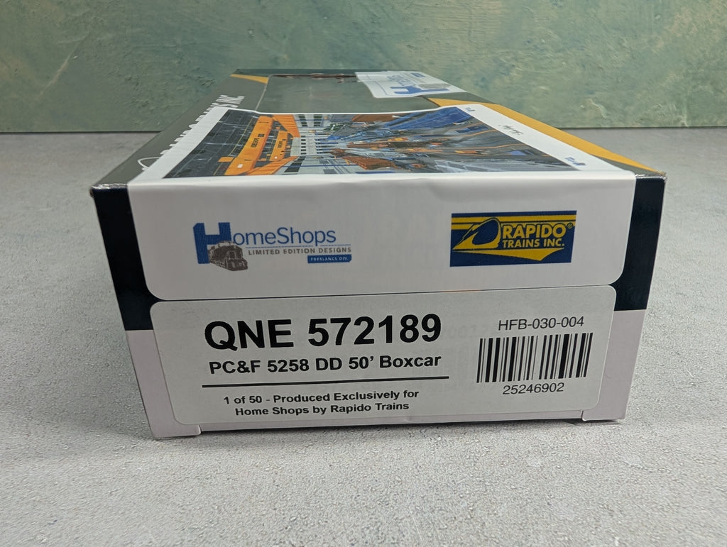 Rapido HFB-030-004 HO Scale PC&F 5258 DD 50' Boxcar Quebec & New England QNE #572189 Home Shops