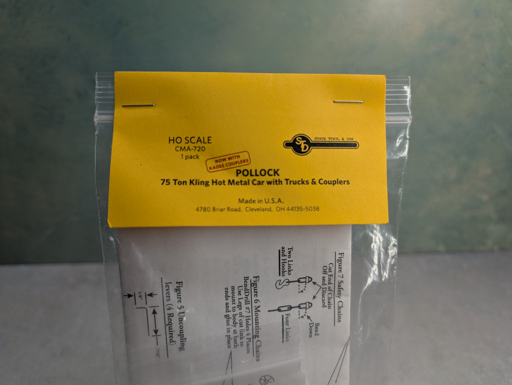 State Tool & Die CMA-720 HO Scale Pollock 75 Ton Kling Hot Metal Car w/ Trucks & Couplers KIT