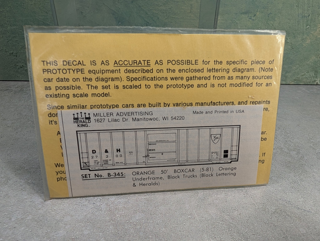 The Herald King B-345 HO Scale Orange 50' Box Car 5-81 Delaware and Hudson Decals