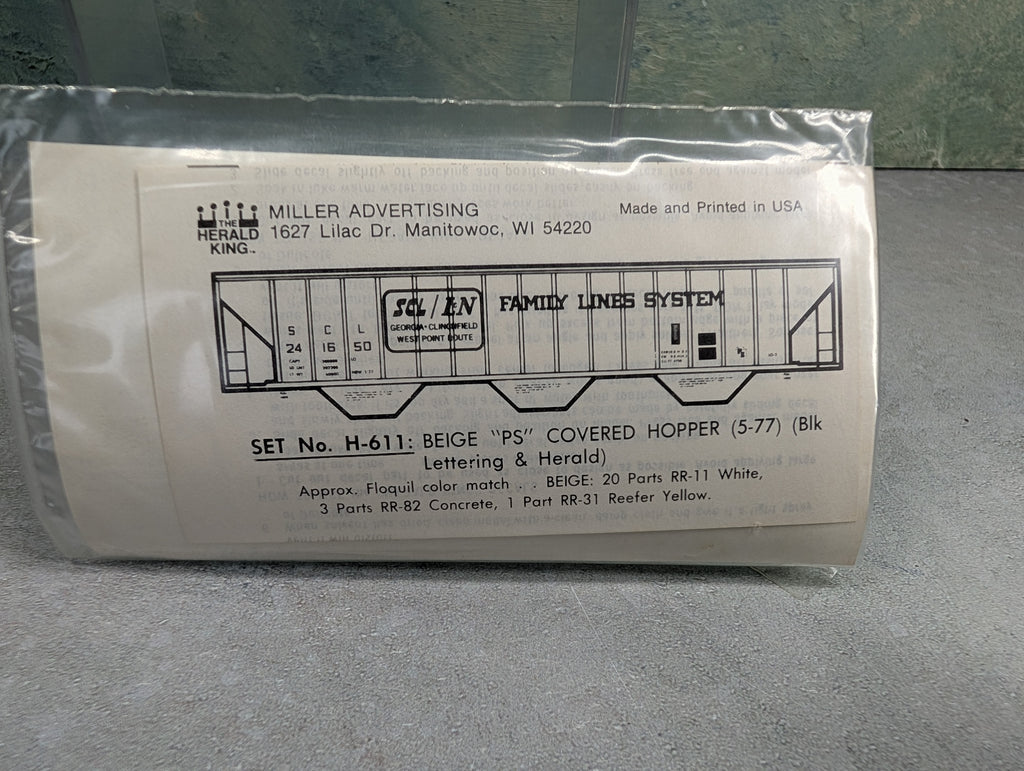 The Herald King H-611 HO Scale Beige PS Covered Hopper 5-77 Family Lines System Decals