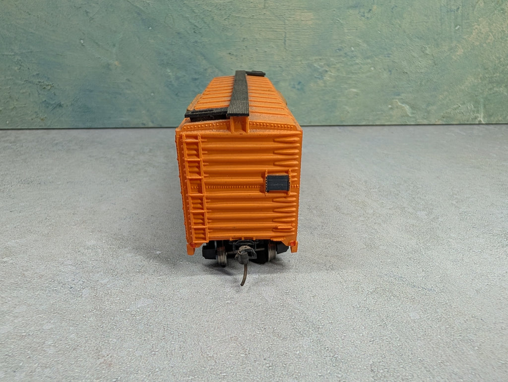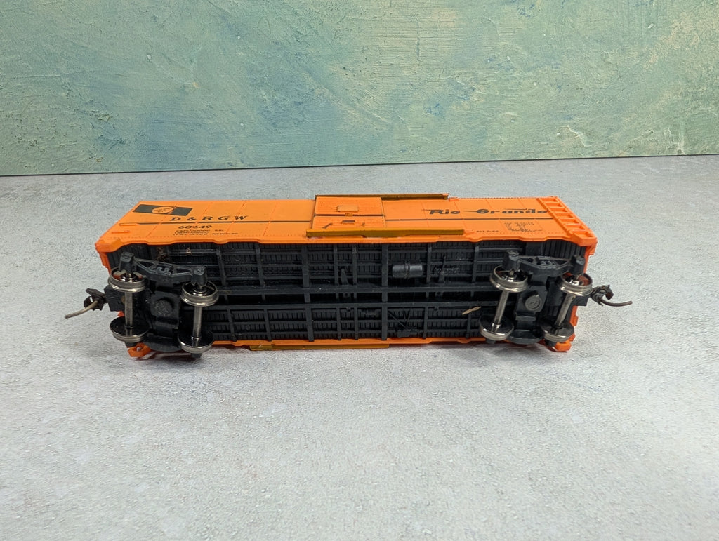 Has metal wheels & knuckle couplers. A little glue residue is visible. No brake wheel or weight. Some paint wear/scratches/scuffs. Might require some light cleaning.Used Items are sold AS-IS with no warranty.