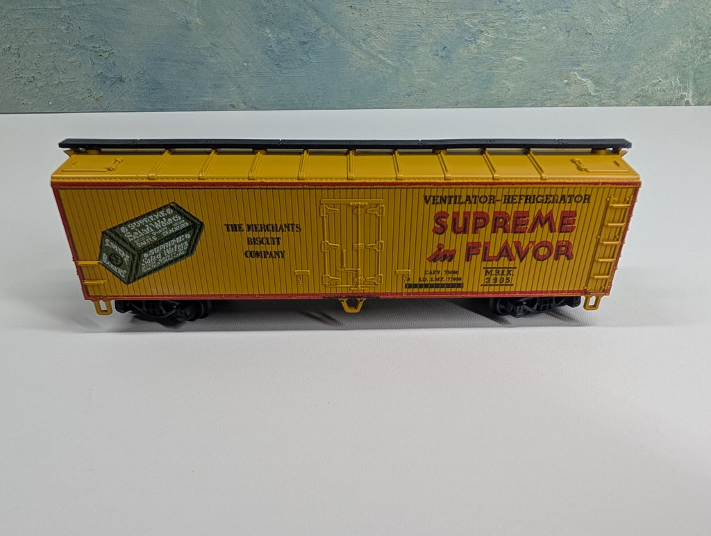 USED AHM HO Scale 40' Wooden Billboard Reefer Box Car Merchants Biscuit Co MBIX #3905