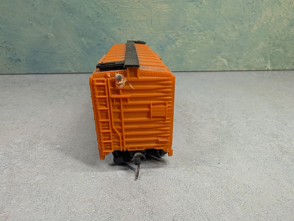 No wheels. Has updated gearboxes and knuckle couplers. No brake wheel. Some paint wear/scratches/scuffs. Might require some light cleaning.