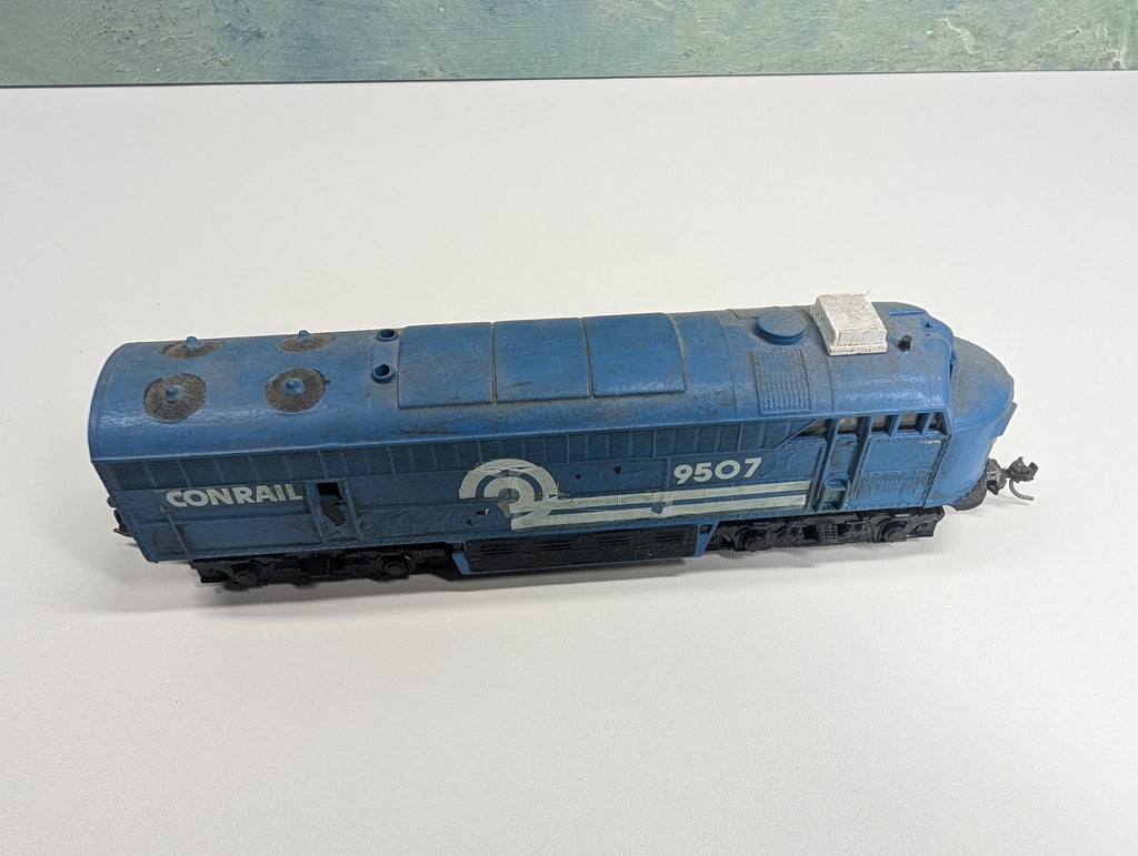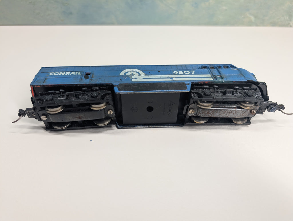 Tested and runs in both directions, although it was a little rough moving. Maintenance should be performed for best operation. The decal is flaking off. In ok cosmetic condition although there seems to be some roughness to the front of it. Paint has chips. Horns are included to be repaired. Paint chipping off. Knuckle couplers installed. May have paint wear/scratches/scuffs. Might require some light cleaning.