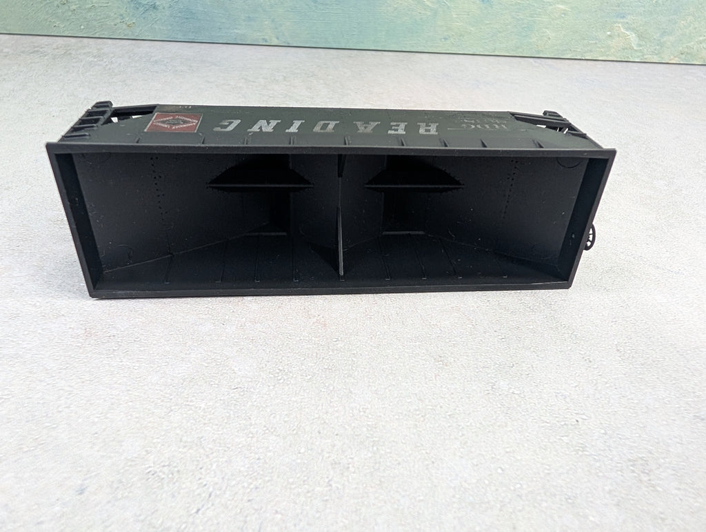 In nice condition. The weathering looks nice. Has knuckle couplers. Some minor glue residue is visible. Some paint wear/scratches/scuffs. Might require some light cleaning.