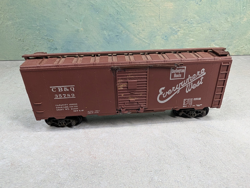 Has damaged parts. Some gluer residue and missing parts. Some paint wear/scratches/scuffs. Might require some light cleaning.