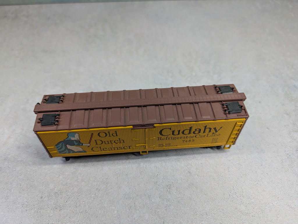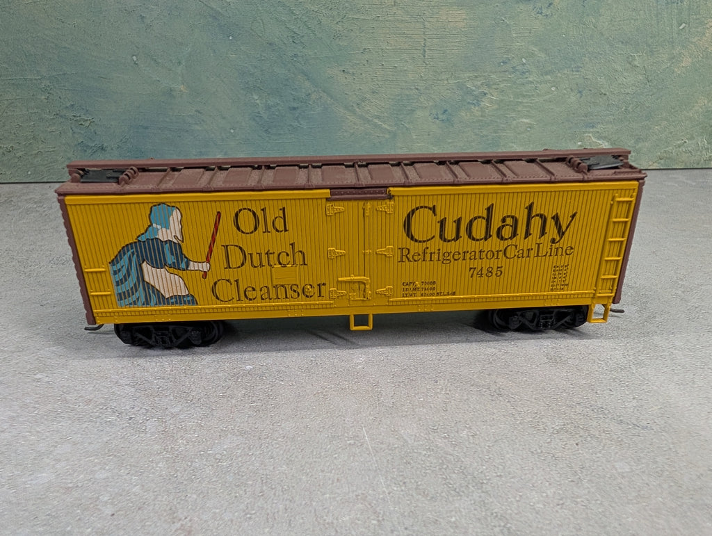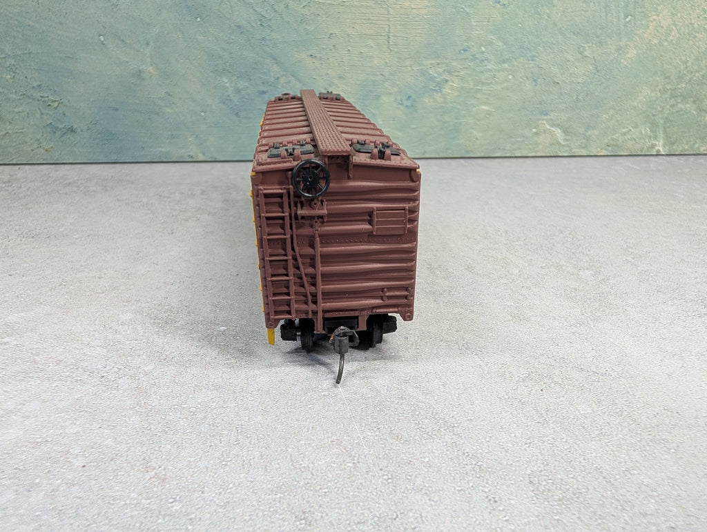In overall nice condition, however it is missing 2 steps and the hatch latches. Has knuckle couplers. Some paint wear/scratches/scuffs. Might require some light cleaning.