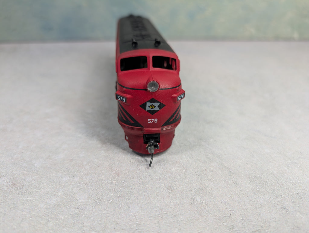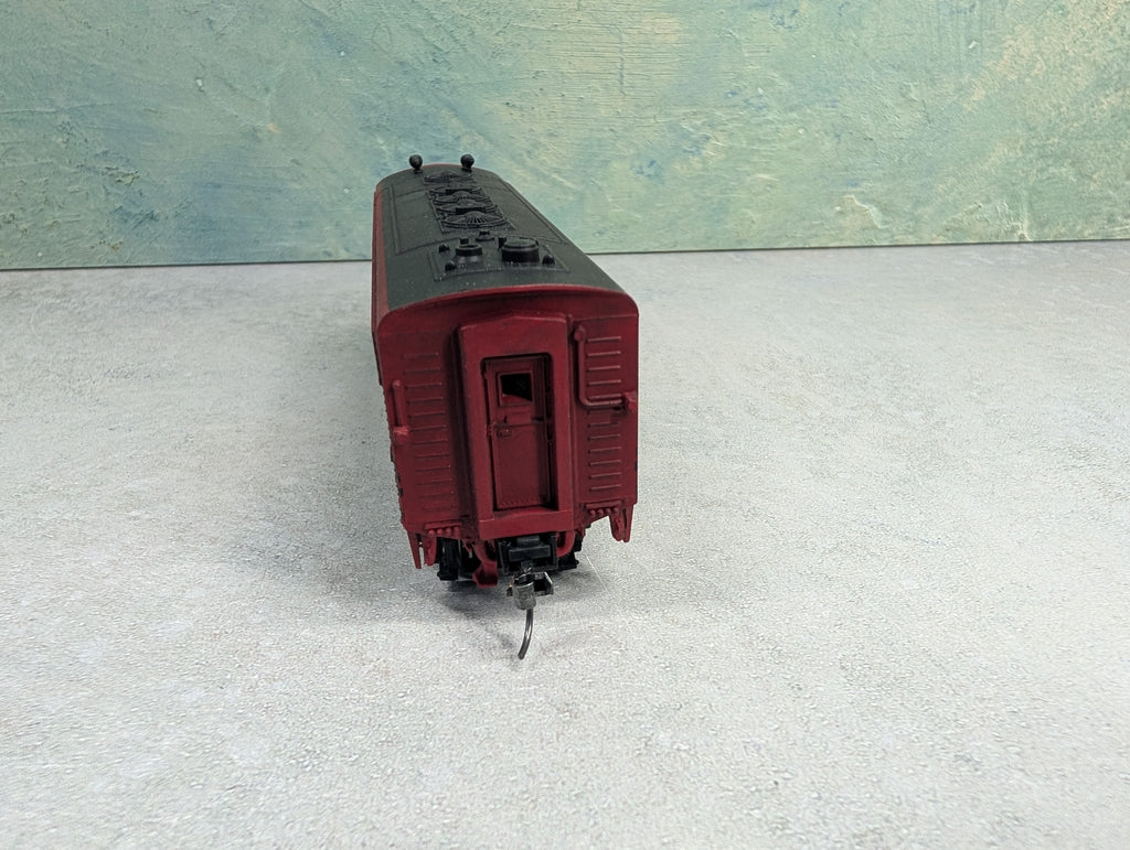 Tested and runs great! In great cosmetic conition. Has knuckle couplers. No window glazing. The lights works! Some paint wear/scratches/scuffs. Might require some light cleaning.