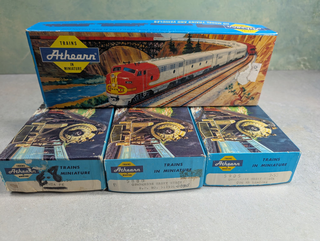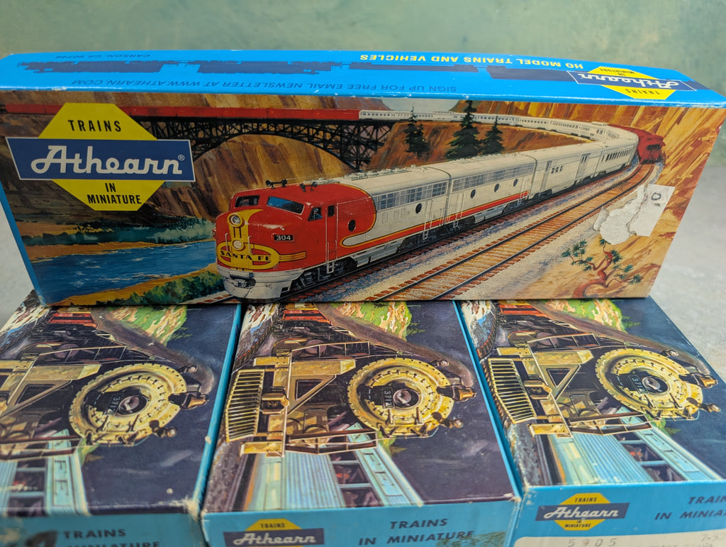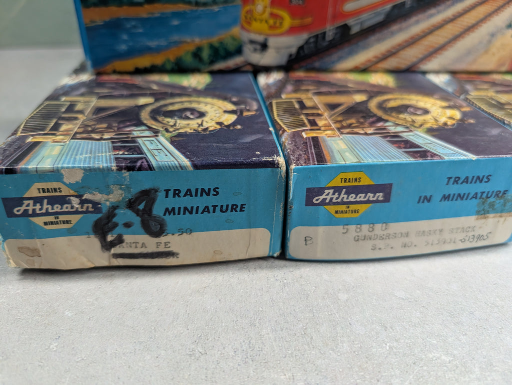 Empty boxes, these do not have any trains in them. Some have writing on them and a few were taped at the edges. Some paint wear/scratches/scuffs. Might require some light cleaning.