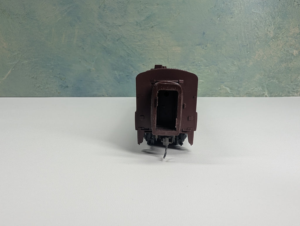 Tested and runs great. The front light is very dim. Normal maintenance should be performed for best results, since this was in storage for some time. In very nice cosmetic condition. Knuckle couplers installed. Does not include box. May have paint wear/scratches/scuffs. Might require some light cleaning.