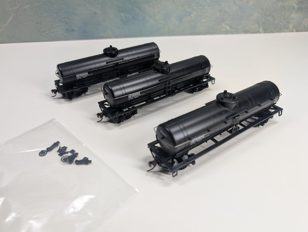 All in nice condition. 6 hazard details and the brake wheels are included to be installed. Knuckle couplers installed. May have paint wear/scratches/scuffs. Might require some light cleaning.