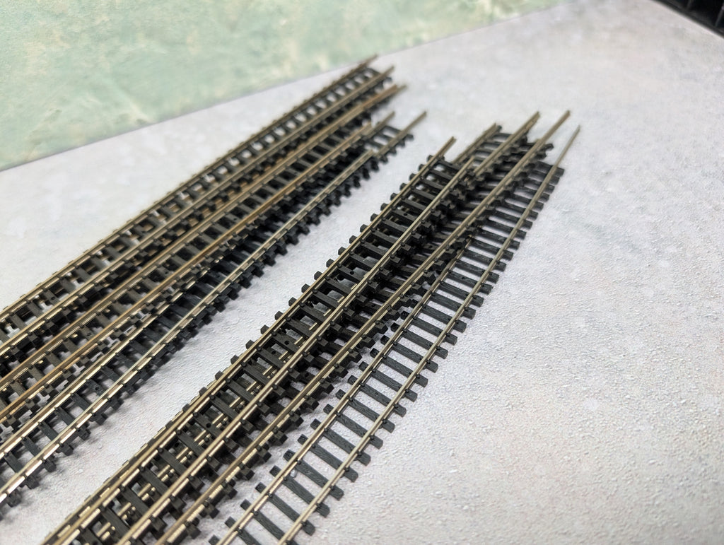 Some ties are damaged or missing. A few spots are rusty. New rail joiners should be installed. Some paint wear/scratches/scuffs.