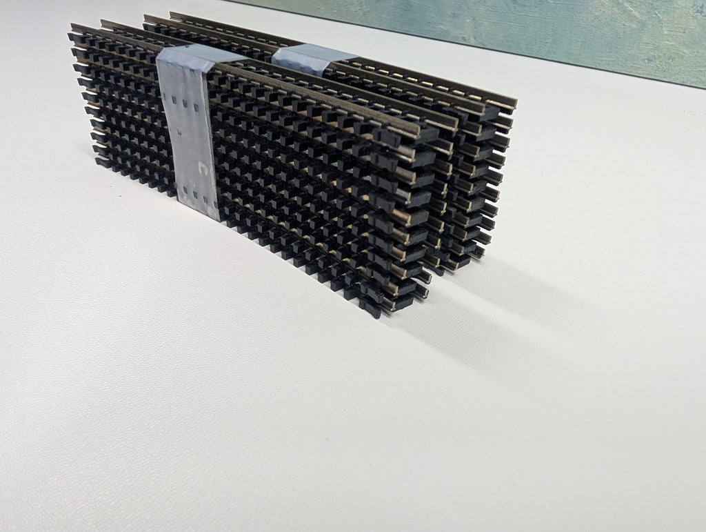 In good condition. Some may have layout residue on them from previously being on a layout. Will need joiners. May be missing a few ties. May have paint wear/scratches/scuffs. Might require some light cleaning.