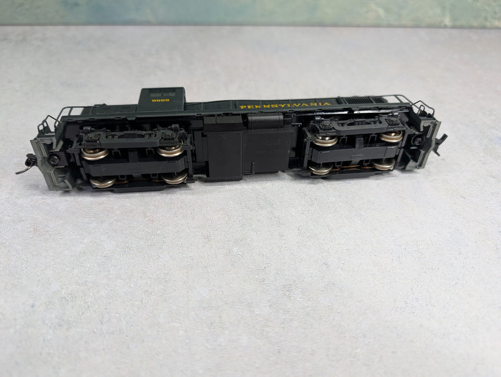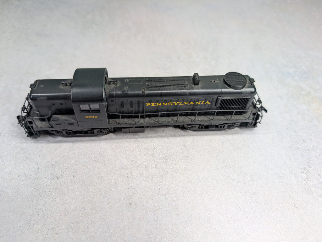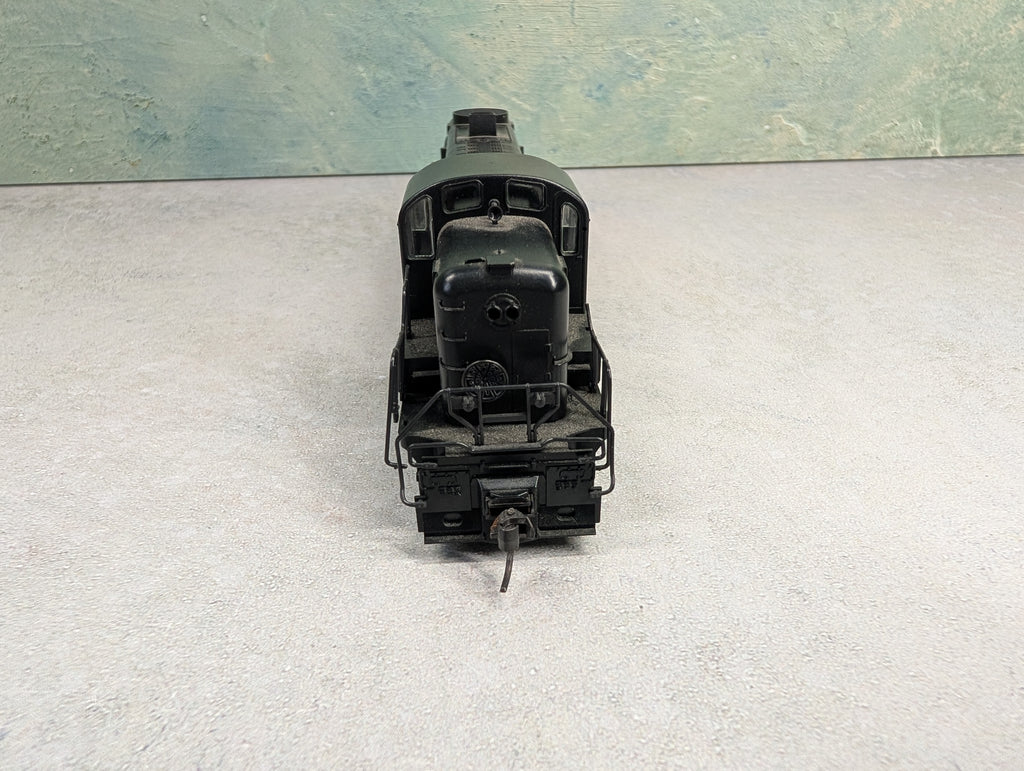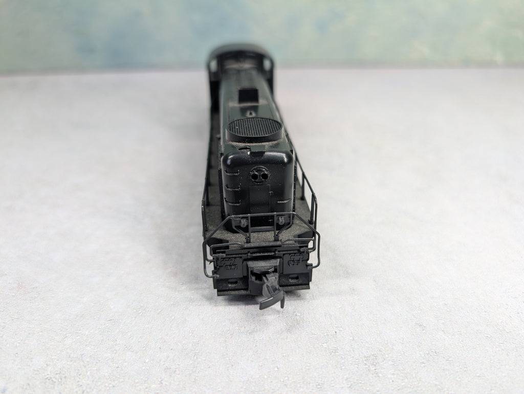 Tested and runs great in both directions. No lights. In nice cosmetic condition, however a few rails are damaged. The shell is a little loose from the frame. One horn hook, 1 knuckle coupler. Some paint wear/scratches/scuffs. Might require some light cleaning.