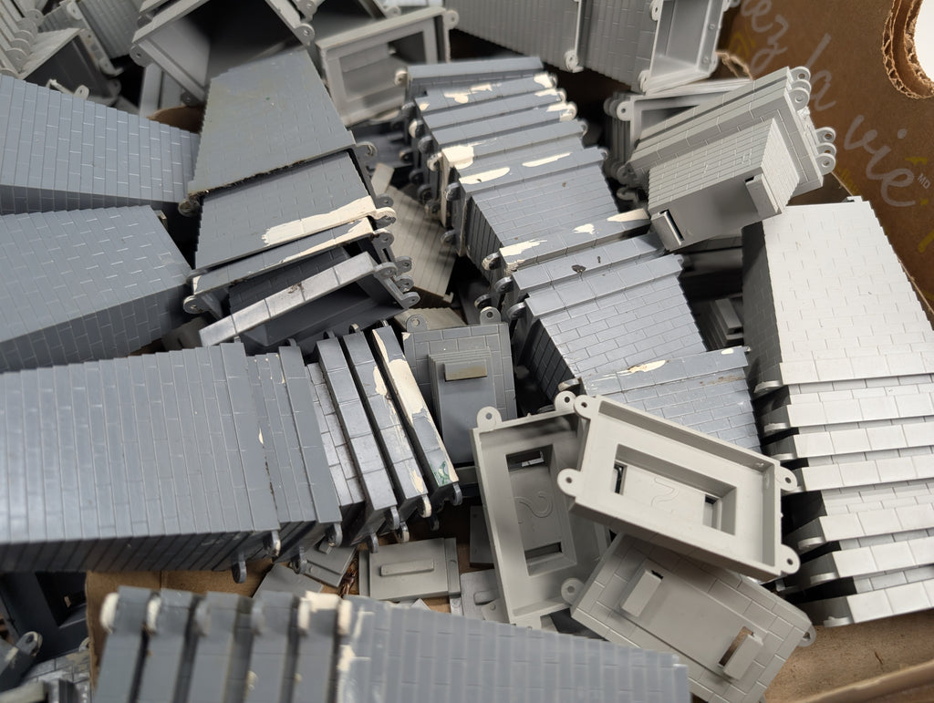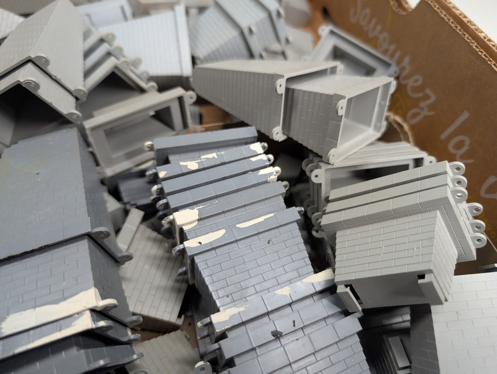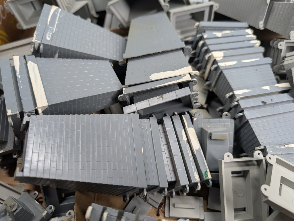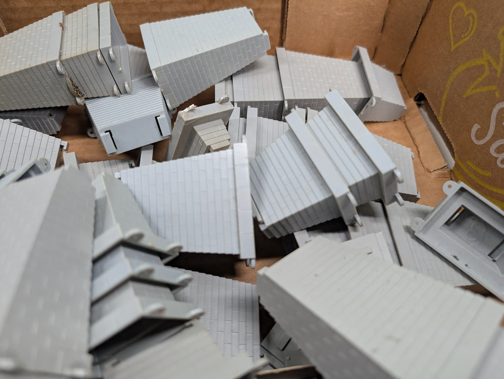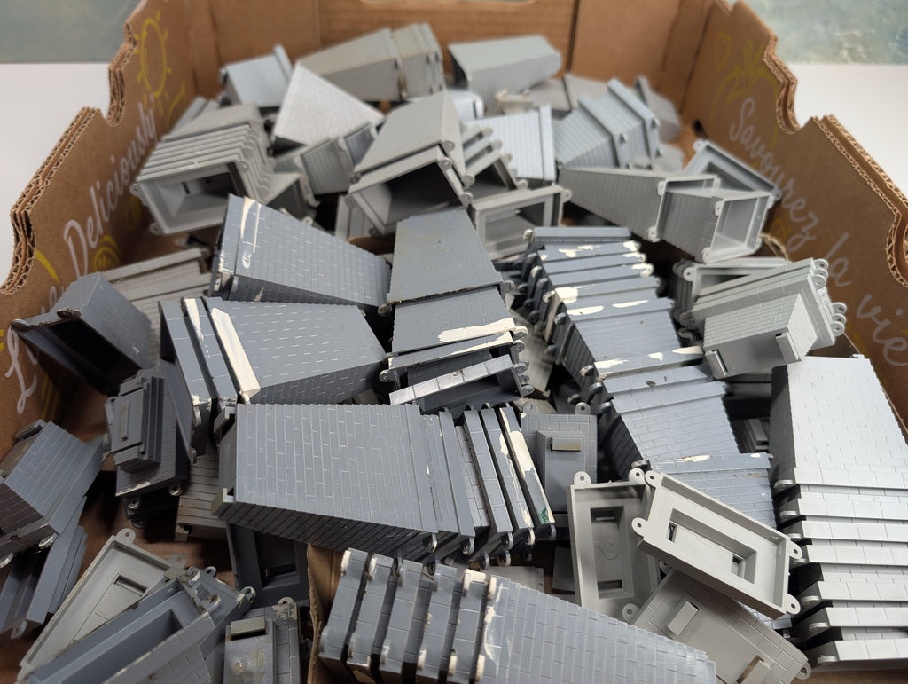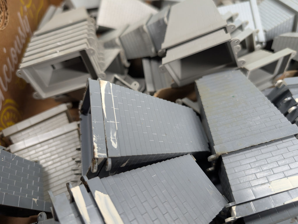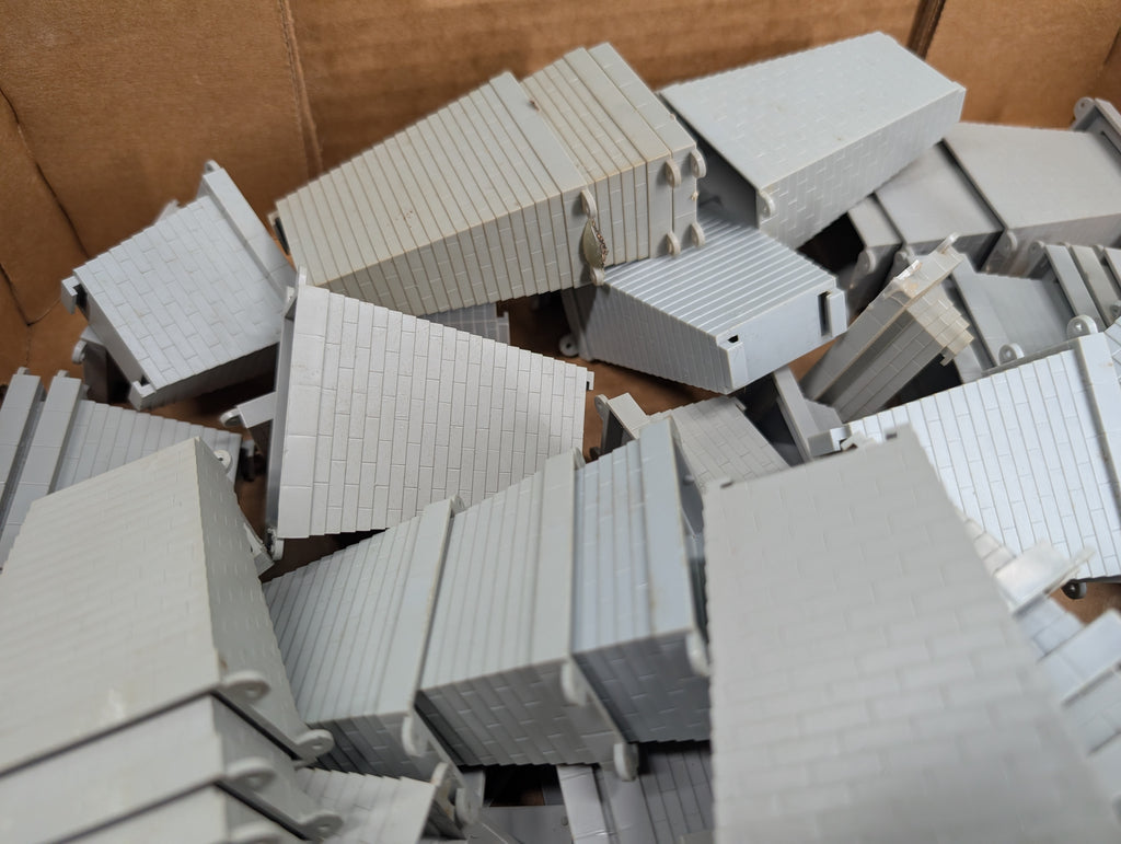 Various sizes and colors. Most of these came off a layout so there is layout residue on some and paint on some. Most are in great condition. Some may be partially damaged but the majority are great! May have paint wear/scratches/scuffs. Might require some light cleaning.