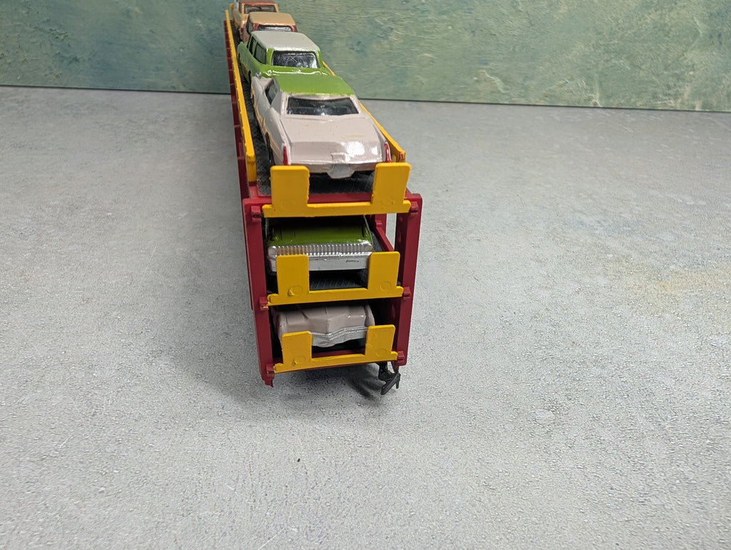 In really nice condition, however the one end ramp is glued on and may need further repairs. Some paint wear/scratches/scuffs. Might require some light cleaning.Used Items are sold AS-IS with no warranty.