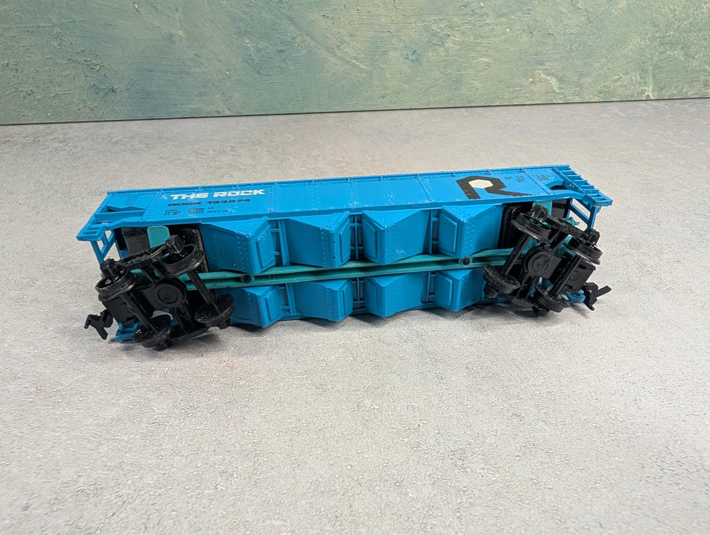 No brake wheel, has ballast residue on the inside of the hopper. Some paint wear/scratches/scuffs. Might require some light cleaning.Used Items are sold AS-IS with no warranty.