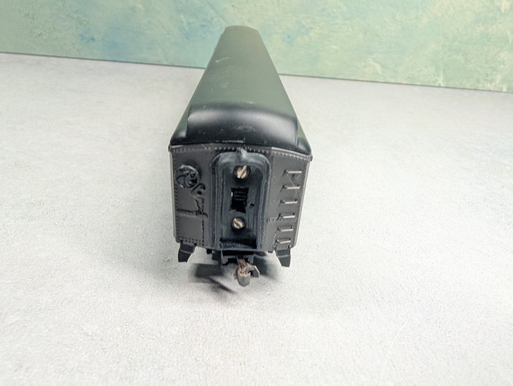 In good condition, however the one truck/gearbox need work for them to move in sync and not get stuck. Some gluer residue is visible from some spots being repaired. The one coupler was changed out to a different coupler, no gearbox cover for that one. Some paint wear/scratches/scuffs. Might require some light cleaning.