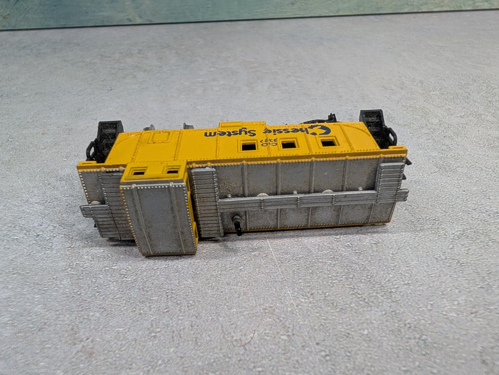 In nice conditioin. Missing 1 metal wheel, couplers are included to be installed. Some paint wear/scratches/scuffs. Might require some light cleaning.
