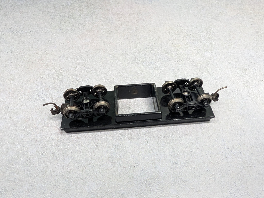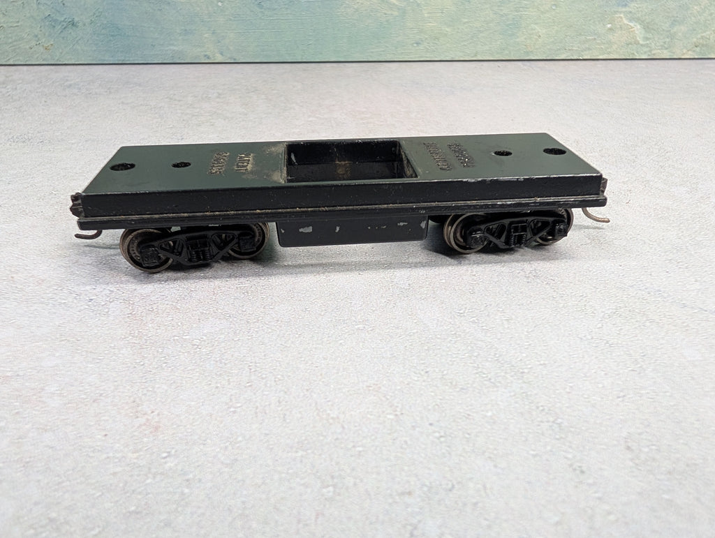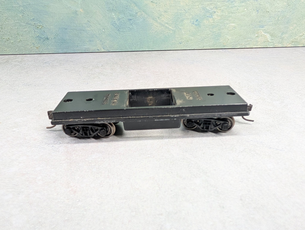 Frame only. Metal frame with metal wheels & knuckle couplers. In nice condition. Some paint wear/scratches/scuffs. Might require some light cleaning.