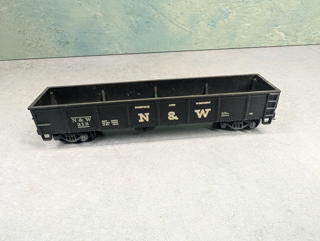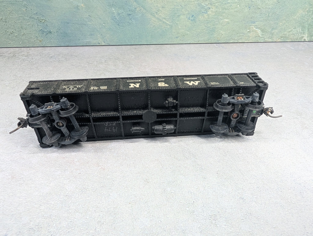 Light, no weight installed. Custom decals and paint. Gearboxes are a little rough, may need some work. No brake wheel. Has knuckle couplers. Some paint wear/scratches/scuffs. Might require some light cleaning.