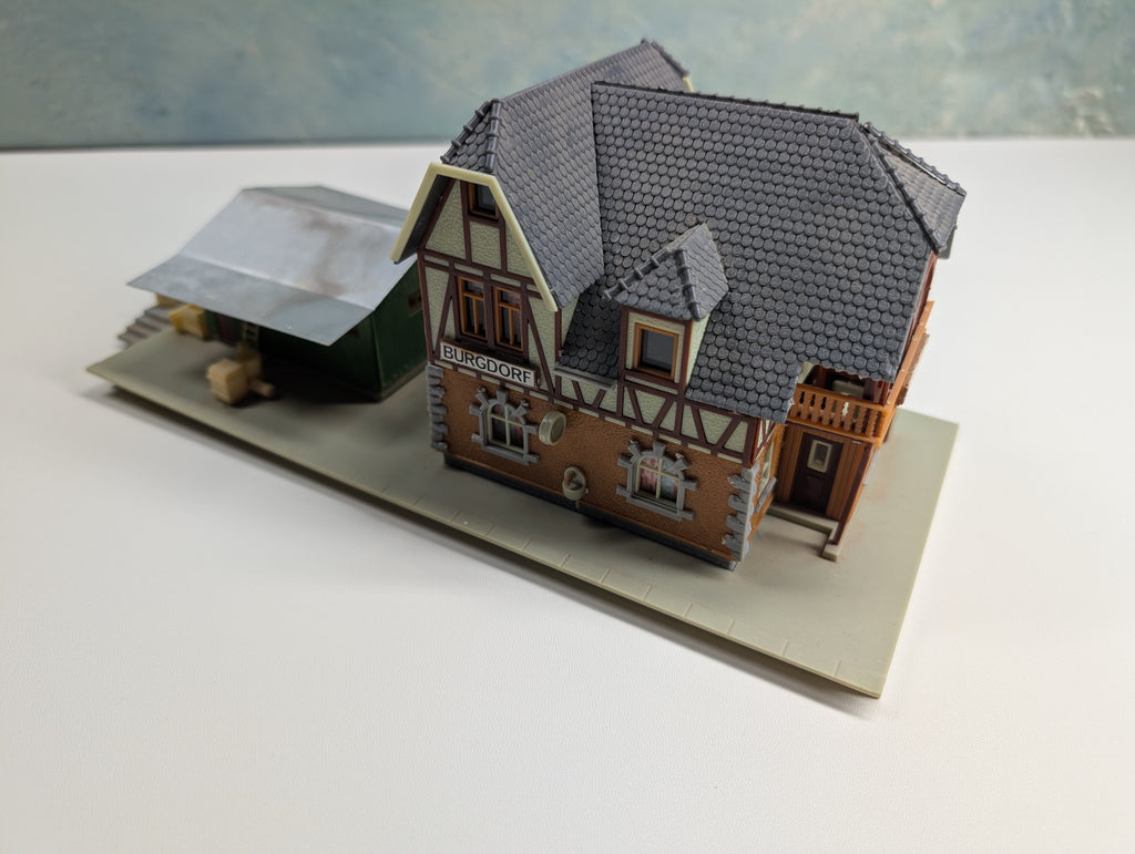 This building was stored and may shows signs of age. May needs repairs. May have visible glue residue. May have custom paint in some areas. Would be a great project! May be missing parts. Some parts may seem loose, if so they will need to be repaired to be attached properly. May have paint wear/scratches/scuffs. Might require some light cleaning.