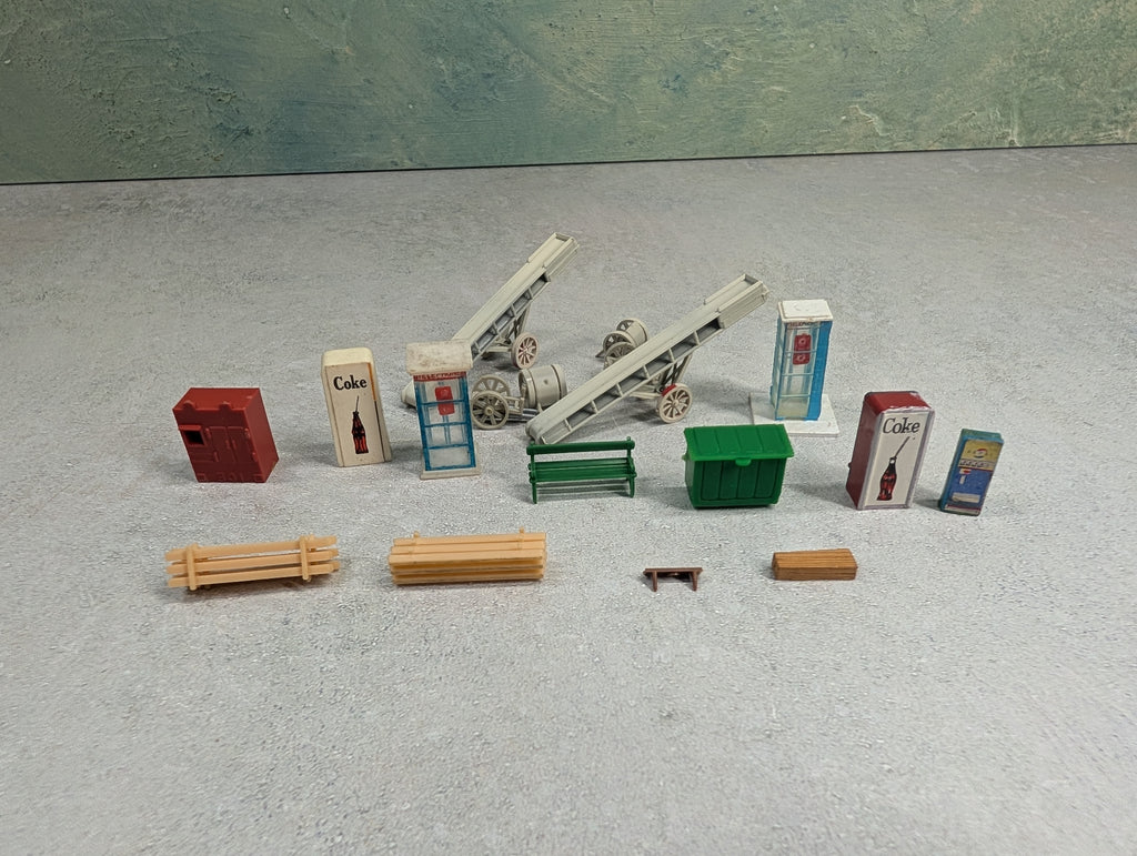 USED HO Scale Lot of Various Layout Details, Coke Machine, Dumpster, Park Bench & More