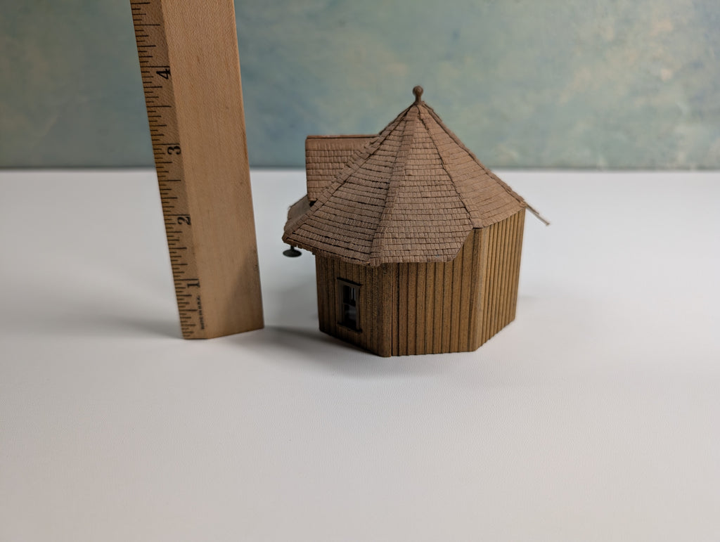 This is custom scratch built. Will need some work to make it work for you. This was on a HO layout, but because it was scratch built, the size may vary slightly. Please look at the photo with the ruler to see if this is the size you want. May have paint wear/scratches/scuffs. Might require some light cleaning.