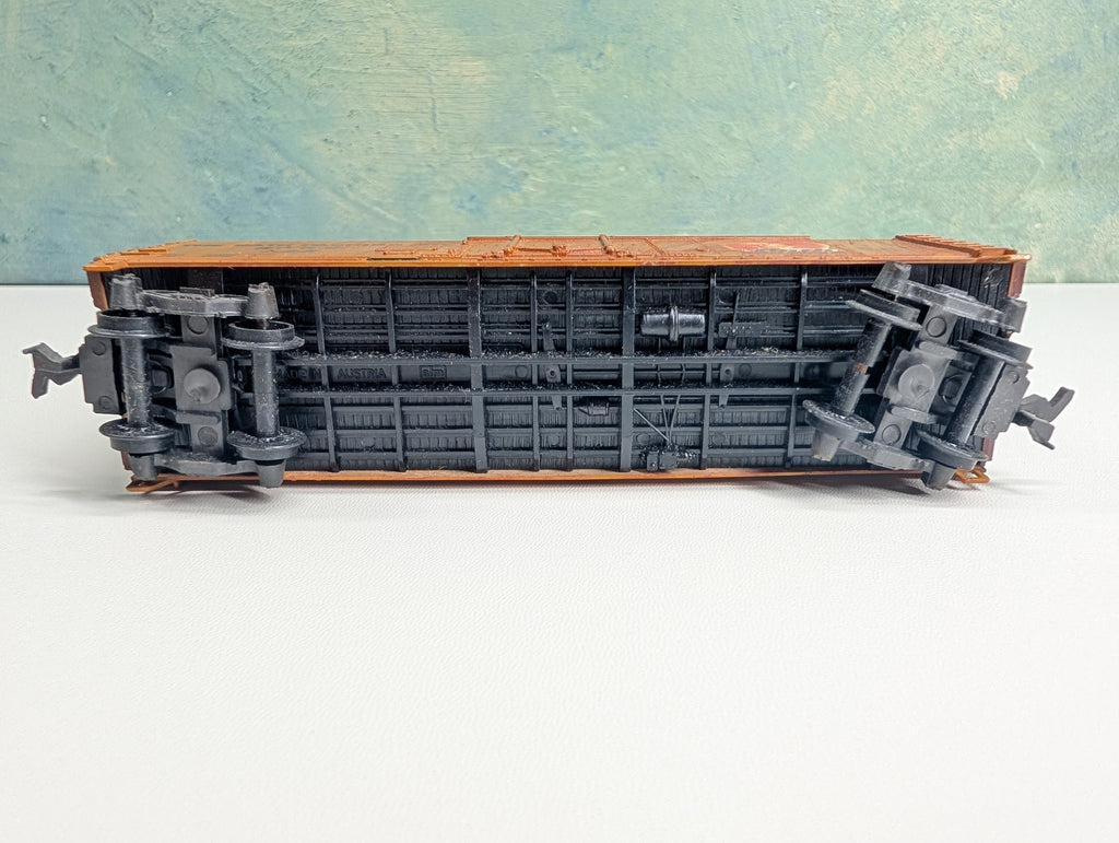 In nice condition. Weathering looks great. Some sticky residue at the one logo. Horn Hook couplers installed. May have paint wear/scratches/scuffs. Might require some light cleaning.