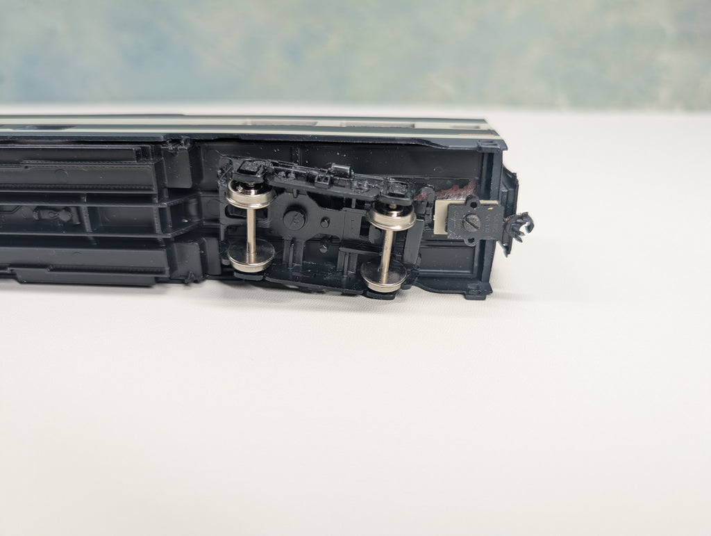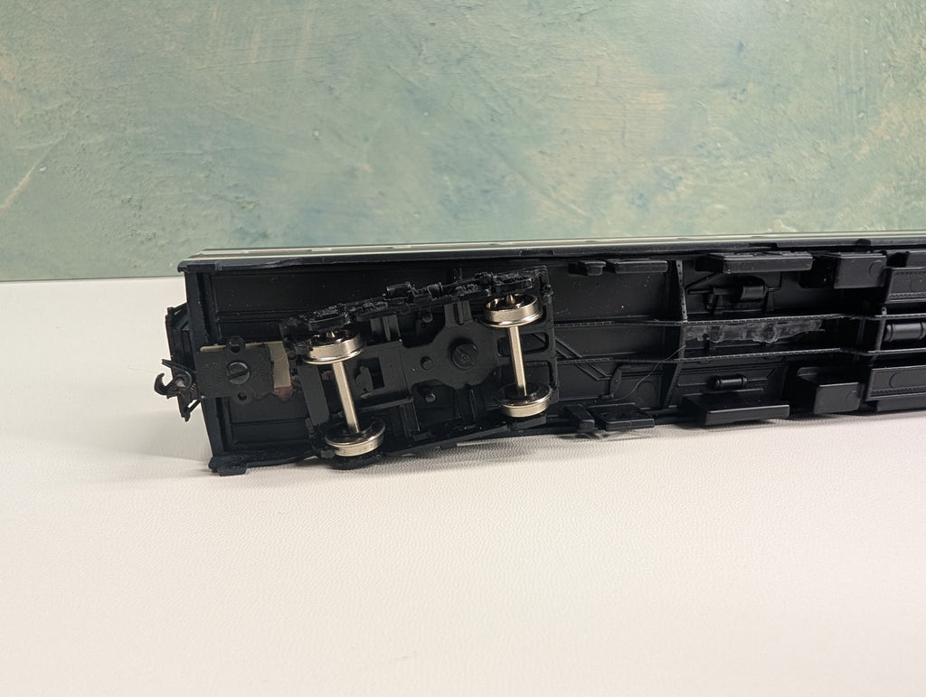 In very nice condition. Has metal wheels. The coupler trip pins are cut back. Some weights were added to the inside of the car. Includes interiors. A few tiny truck details are missing. Knuckle couplers installed. Box with insert included. May have paint wear/scratches/scuffs. Might require some light cleaning.