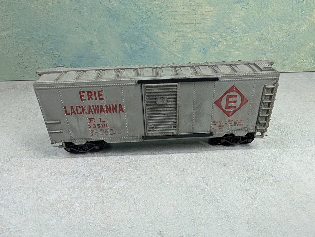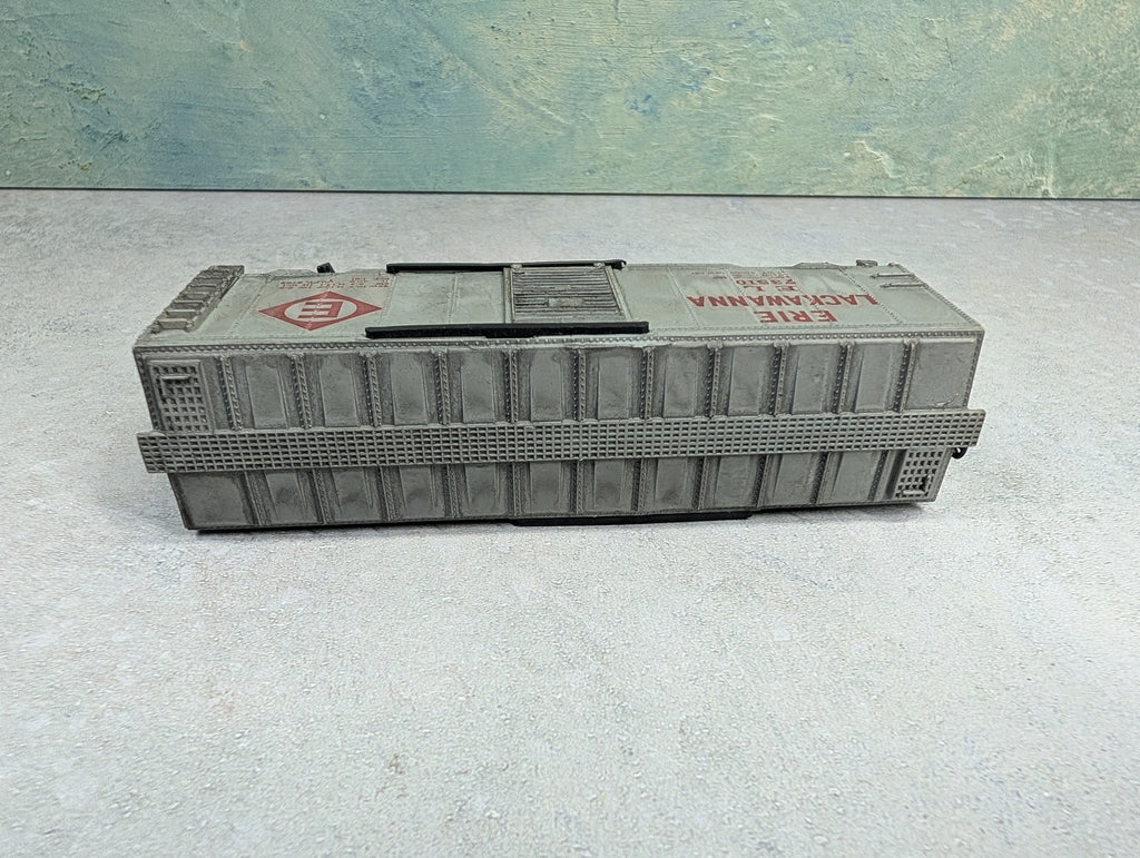 The light weathering is nice. Has damaged/missing steps. Has gearboxes and knuckle couplers added. Some paint wear/scratches/scuffs. Might require some light cleaning.Used Items are sold AS-IS with no warranty.