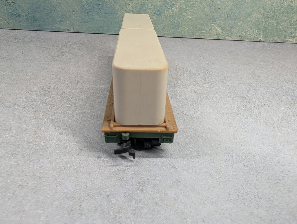 In good condition. No brake wheel. The trailers are glued down. Some paint wear/scratches/scuffs. Might require some light cleaning.