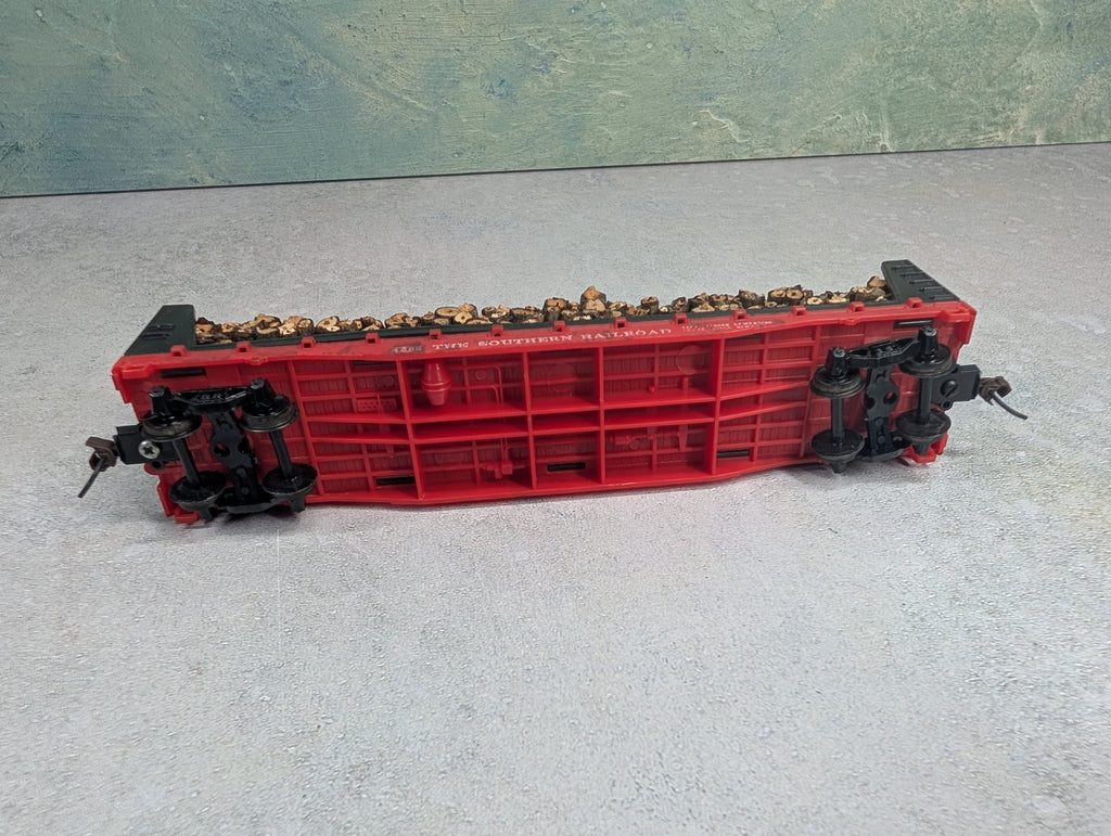 One is missing a step and missing the brake wheels. Has upgraded gearboxes and knuckle couplers. Gluer residue. Some paint wear/scratches/scuffs. Might require some light cleaning.