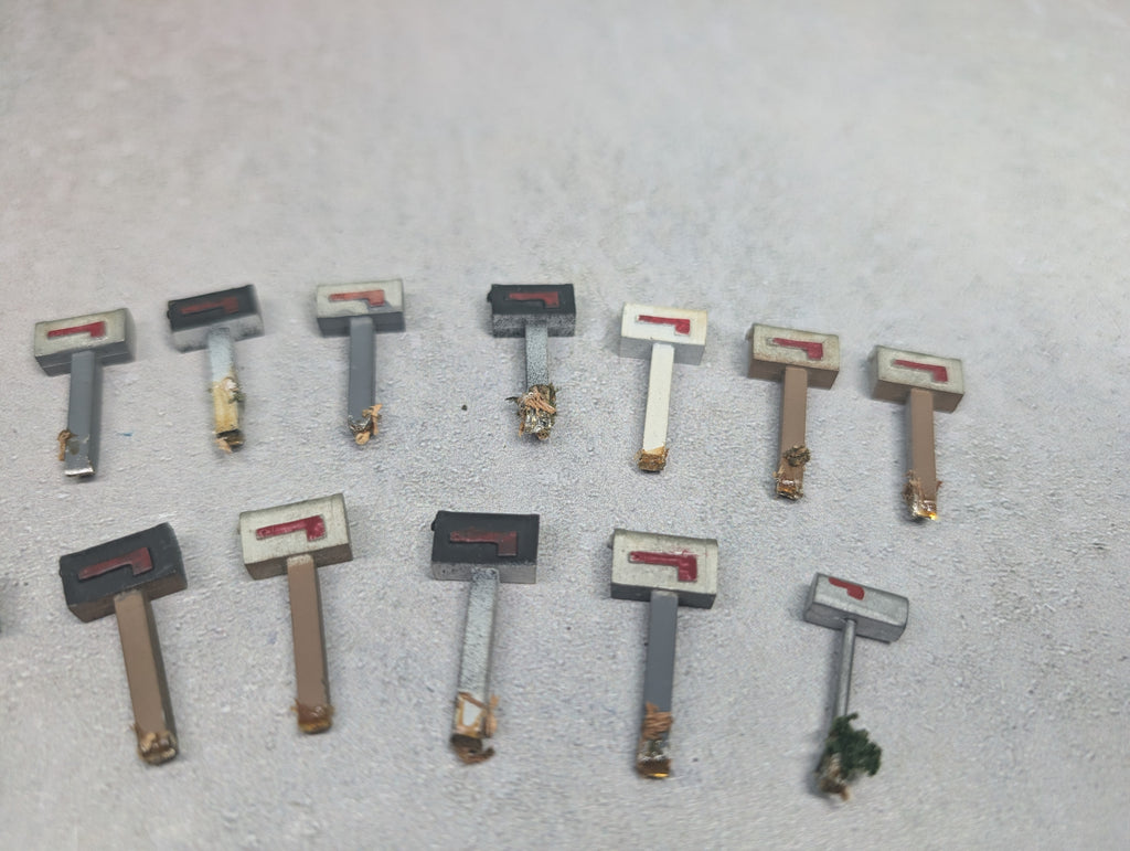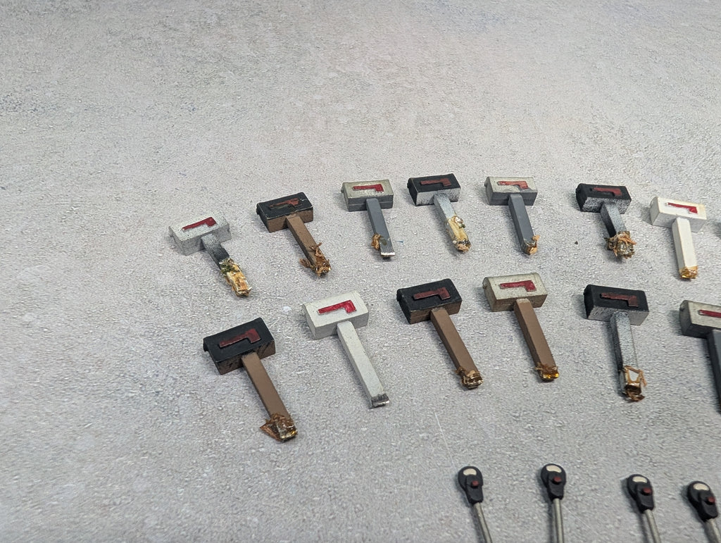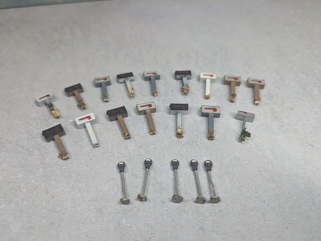 In nice condition. Came off a layout so there is layout residue on the bottom of them. Some paint wear/scratches/scuffs. Might require some light cleaning.