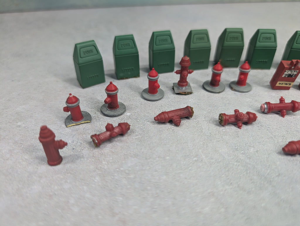 In good condition. Came off a layout so there may be some layout residue on the bottom. Some are metal and some are plastic. Some may be missing their bases. Some paint wear/scratches/scuffs. Might require some light cleaning.