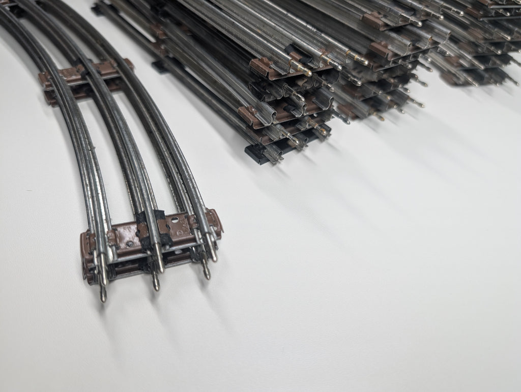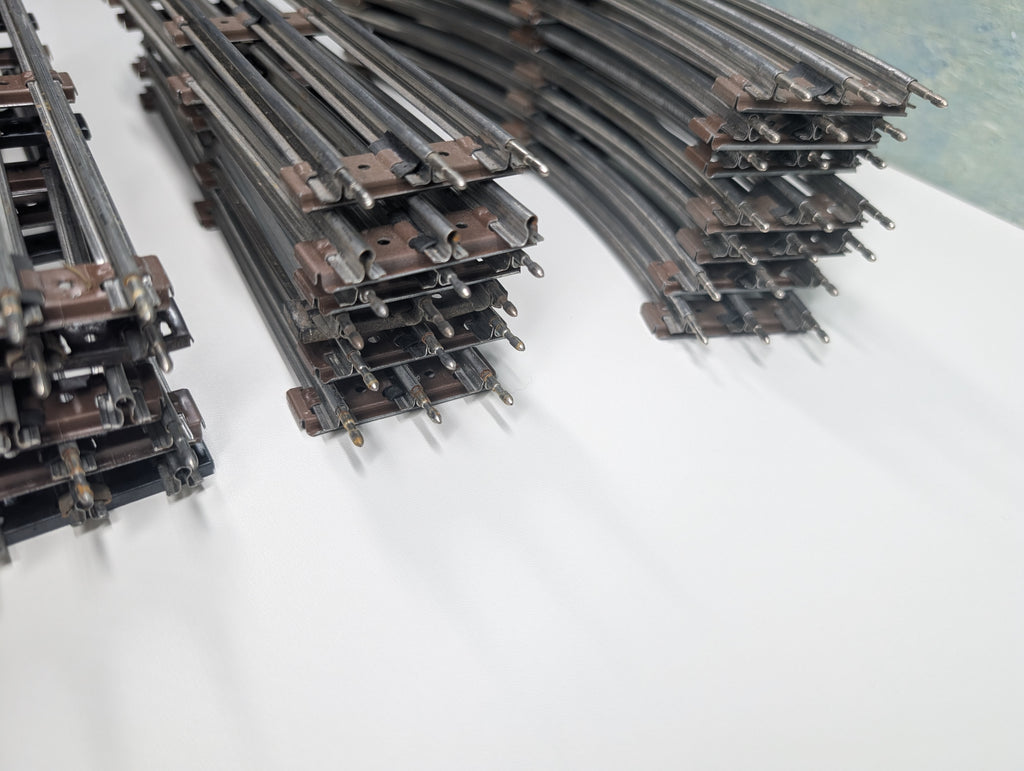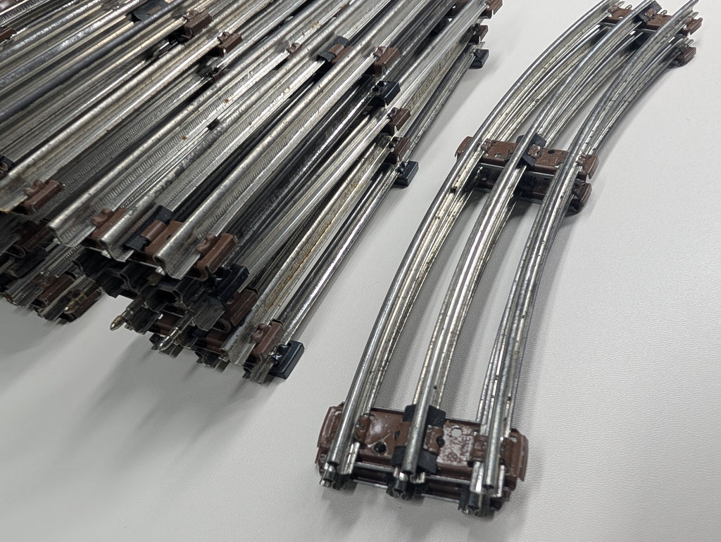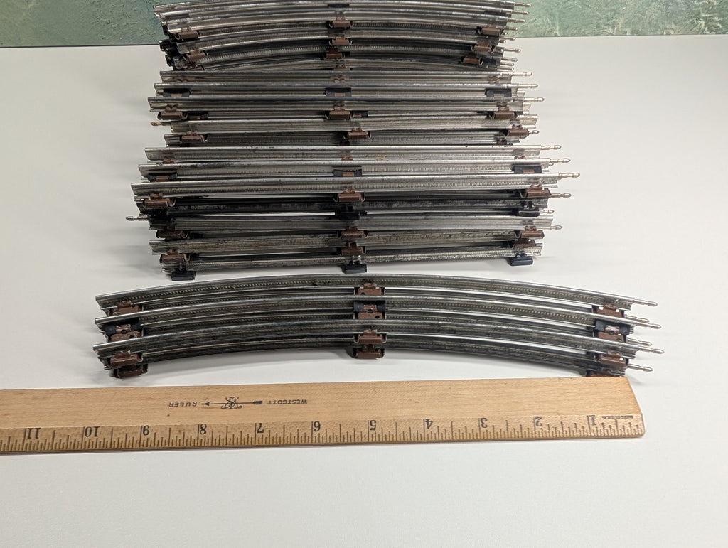 Some rust spots, some pins are missing. Most are O27, but 2 curves are larger. A few extra pieces are included that are not in the photo. May have paint wear/scratches/scuffs. Might require some light cleaning.