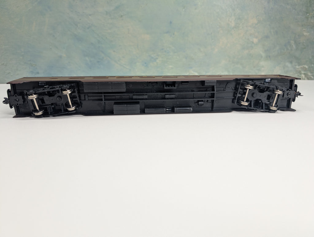 In nice condition. Includes interior. Has metal wheels. Coupler trip pins are cut back. Missing truck detail. Knuckle couplers installed. Does not include box. May have paint wear/scratches/scuffs. Might require some light cleaning.