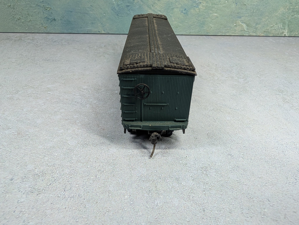 In nice condition. Has metal wheels & knuckle couplers. Some paint wear/scratches/scuffs. Might require some light cleaning.