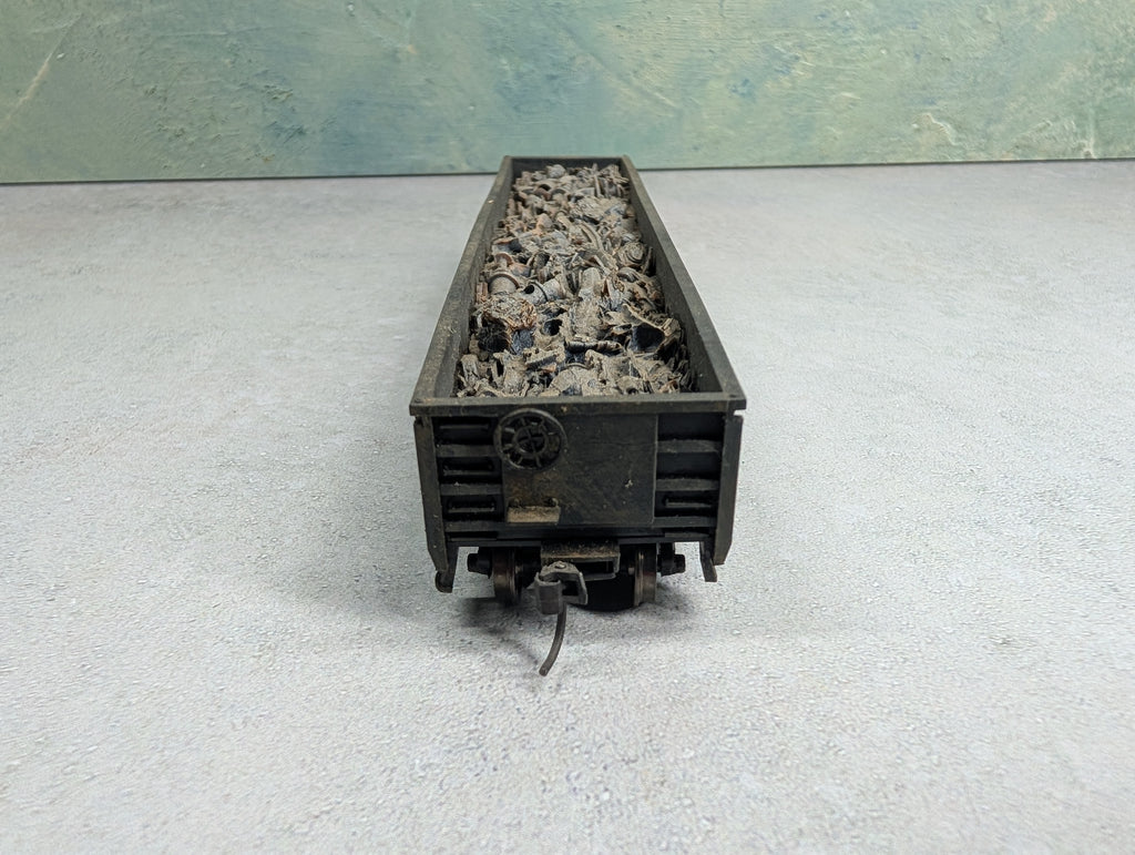 Amazing weathering and scrap load. Has metal wheels & knuckle couplers. Some paint wear/scratches/scuffs. Might require some light cleaning.Used Items are sold AS-IS with no warranty.