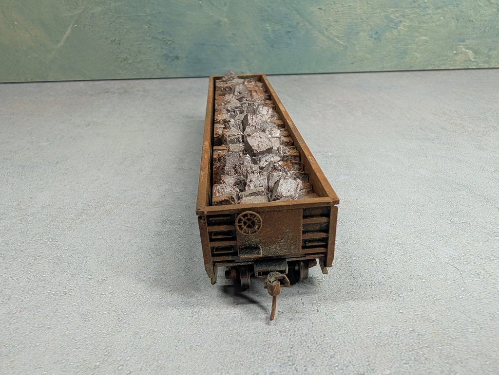 Amazing weathering and stone load. Has metal wheels & knuckle couplers. Some paint wear/scratches/scuffs. Might require some light cleaning.