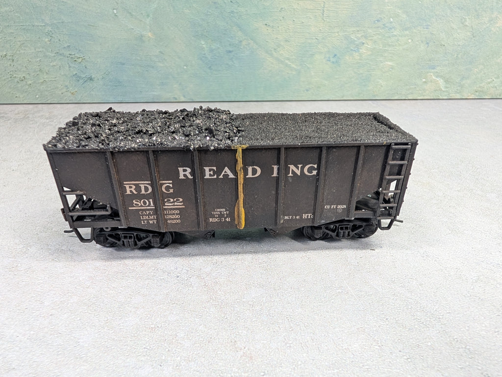 USED Stewart Hobbies HO Scale 2 Bay Open Hopper Reading RDG #80122 Weathered, Split Coal Loads