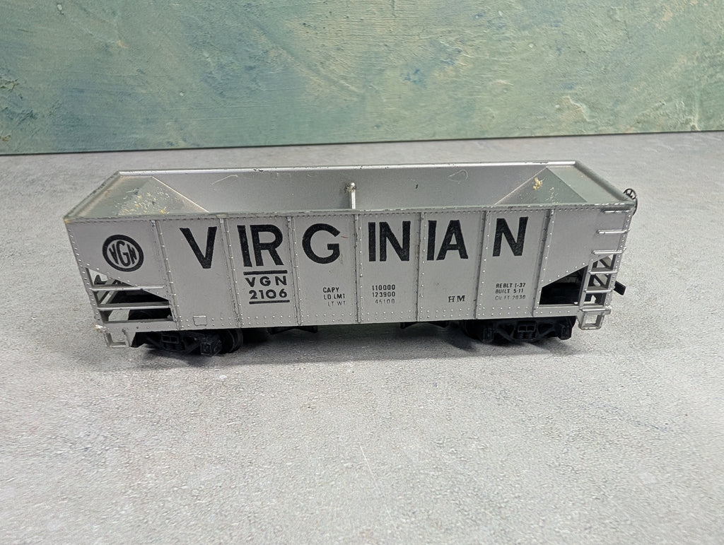 USED Tyco HO Scale 2 Bay Operating Hopper Virginian VGN #2106