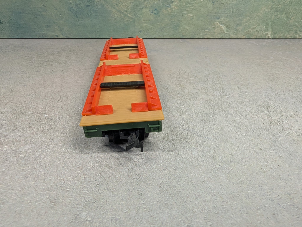 USED Tyco HO Scale 50' Flat Car Santa Fe ATSF #90806 w/ Int Forwarding Trailers