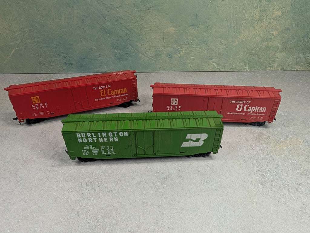 Misisng steps/brake wheel. Some paint wear/scratches/scuffs. Might require some light cleaning.