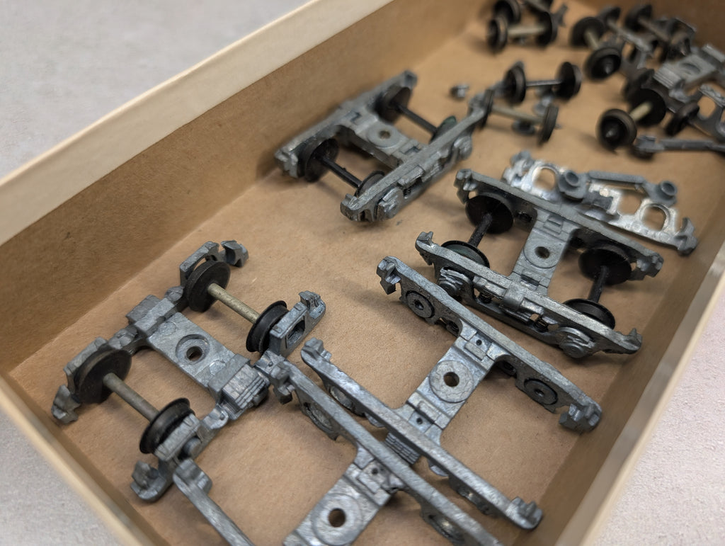 USED Varney HO Scale Lot of Passenger Trucks, Wheels, and Bearing Caps