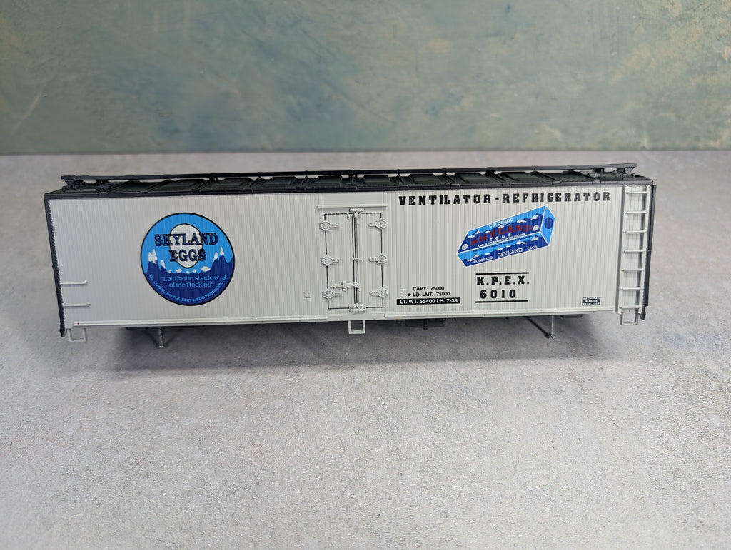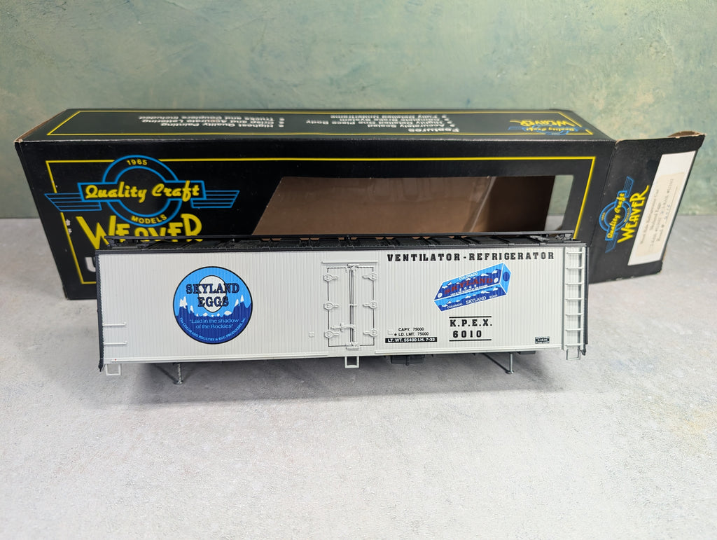 USED Weaver U3117 O Wood Side Refrigerator Car Skyland Eggs KPEX #6010 3 Rail, No Trucks/Couplers